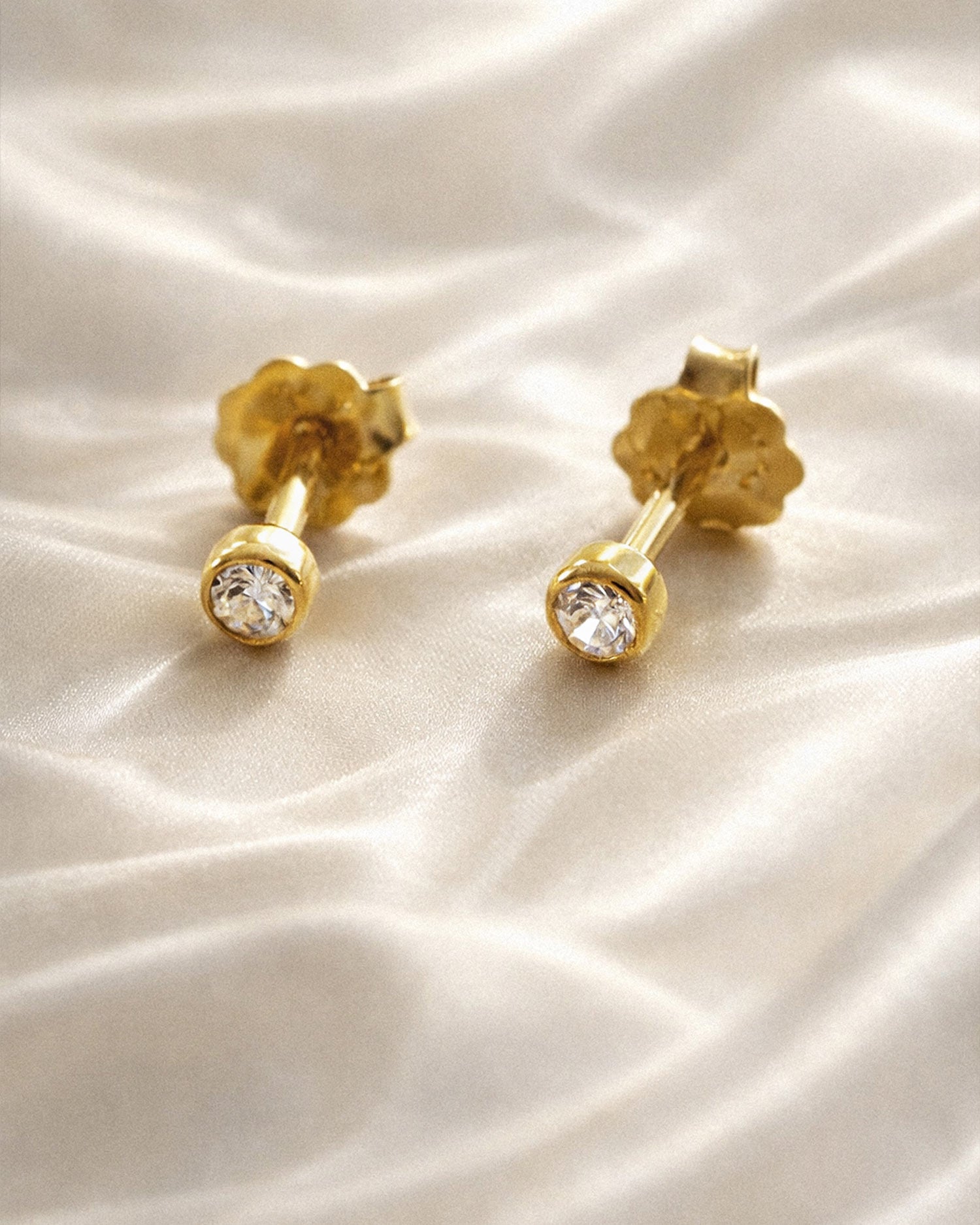 Small silver stud earrings from Drakenberg Sjölin featuring white topaz gemstones set in recycled silver. Minimalist and timeless earrings in Nordic design, perfect for everyday wear and special occasions.